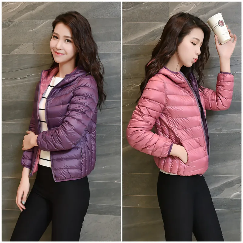 Best Offer Woxingwosu double-sided hooded thin light down jacket autumn winters women's big yards S-4XL
